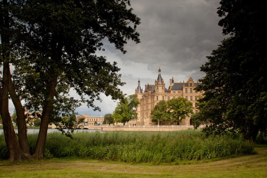 Шверинский замок — сравнительно молодой городской дворец, построенный на небольшом острове на Шверинском озере в середине XIX века для местных герцогов. Сейчас в нём заседает земельный совет Мекленбурга-Передней Померании. Что любопытно, в X-XI в.в. эти места населяли славянские племена, озеро называлось Звериным, а на дворцовом острове находилась крепость Зверин.