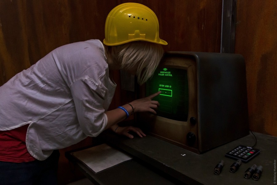 Модное развлечение — квесты в реальности — сделаны по мотивам жанра компьютерных игр Escape the room (выбраться из комнаты — ред.), только все происходящее перенесено в настоящее, осязаемое пространство. Команде, состоящей из 2-4 человек, предстоит ровно за один час выбраться из запертого помещения. В нашем случае это — «Убежище 13» из мира игры Fallout, в котором по легенде квеста игроки спаслись после атомной катастрофы. Бункер построен так, чтобы изолировать людей от внешнего мира, поэтому нужно «хакнуть» систему.